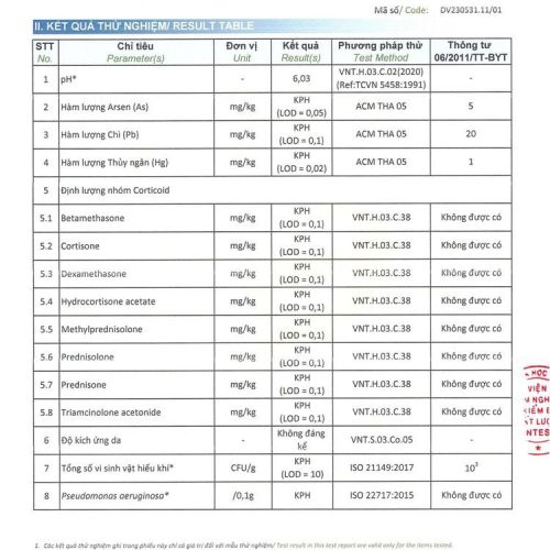 11. Giấy chứng nhận phân tích thành phần Maputi White Cream